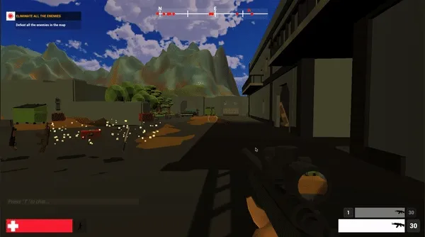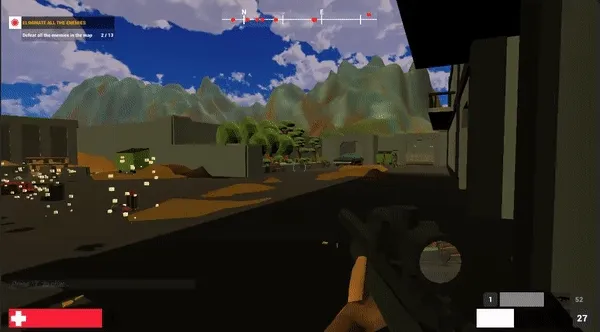 Last but not least, the most difficult challenge is aligning the weapon’s aim to where the bullet will end up, as well as how far each weapon can fire. As you can see in the GIF below, the sniper weapon is not shooting where it is supposed to.