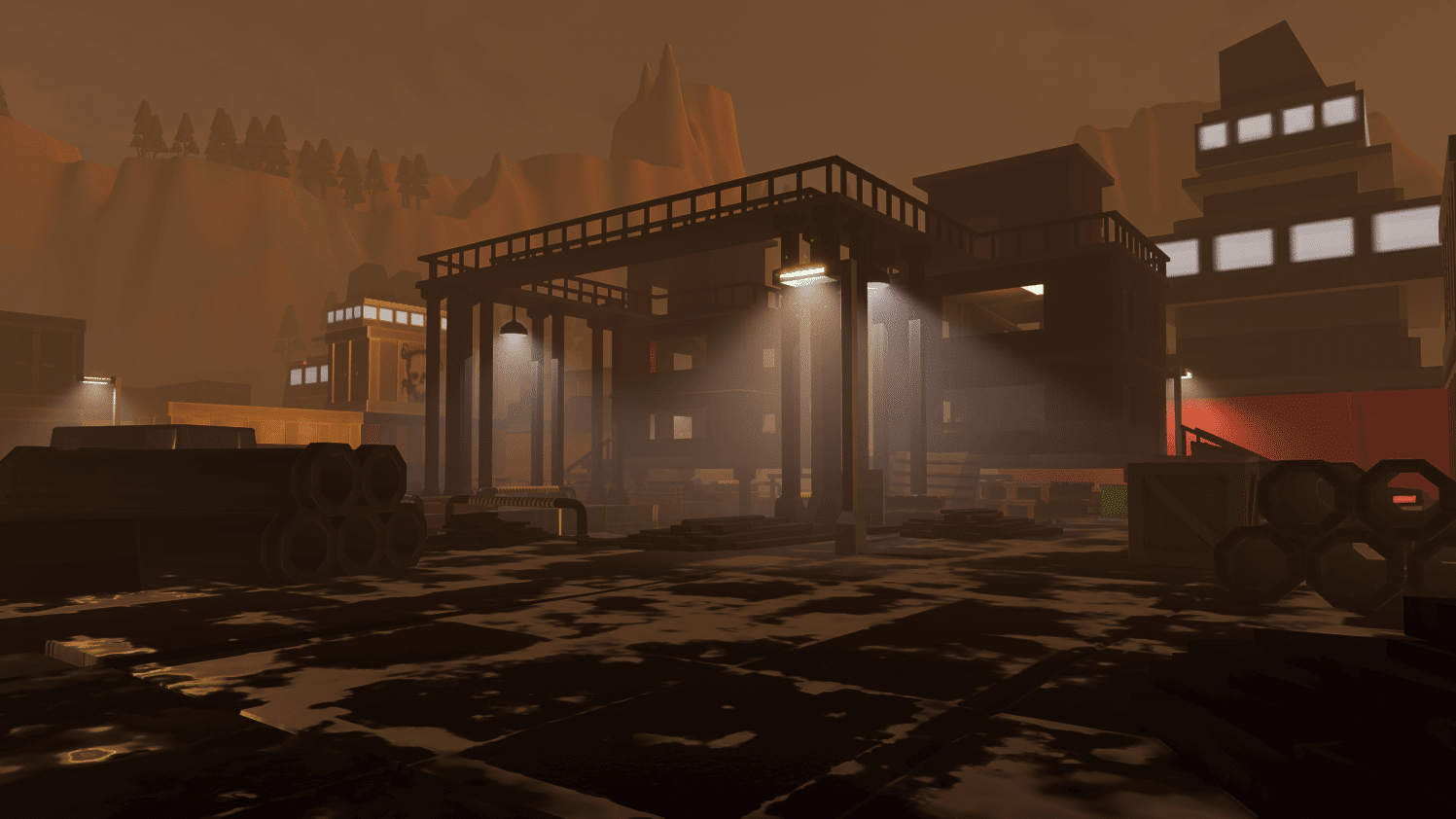 This map sits on the docks at golden hour, with the sun dropping low and casting long shadows over the water. Two large ships are parked side by side, and stacks of containers create tight paths and quick cover. A tunnel runs under the main dock and lets you move from one end of the map to the other without being seen, and there’s a small building on top of it that gives you a solid view of the area. You can weave through the containers, climb for better angles, or push through the tunnel for a quiet flank. It’s a compact space with plenty of ways to outplay whoever’s chasing you.